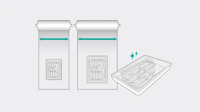 Su capacidad de envasado mejorada y el tiempo de inactividad minimizado de la máquina pueden duplicar su producción hasta un máximo de 60 paquetes por minuto. Admite bandejas de diversos tamaños, formas y materiales.